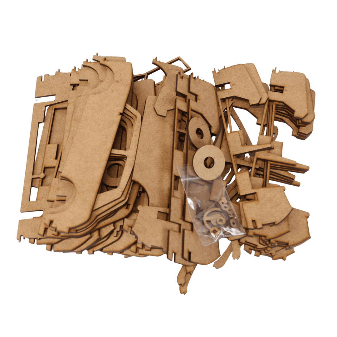 • 98 precision laser-cut pieces
